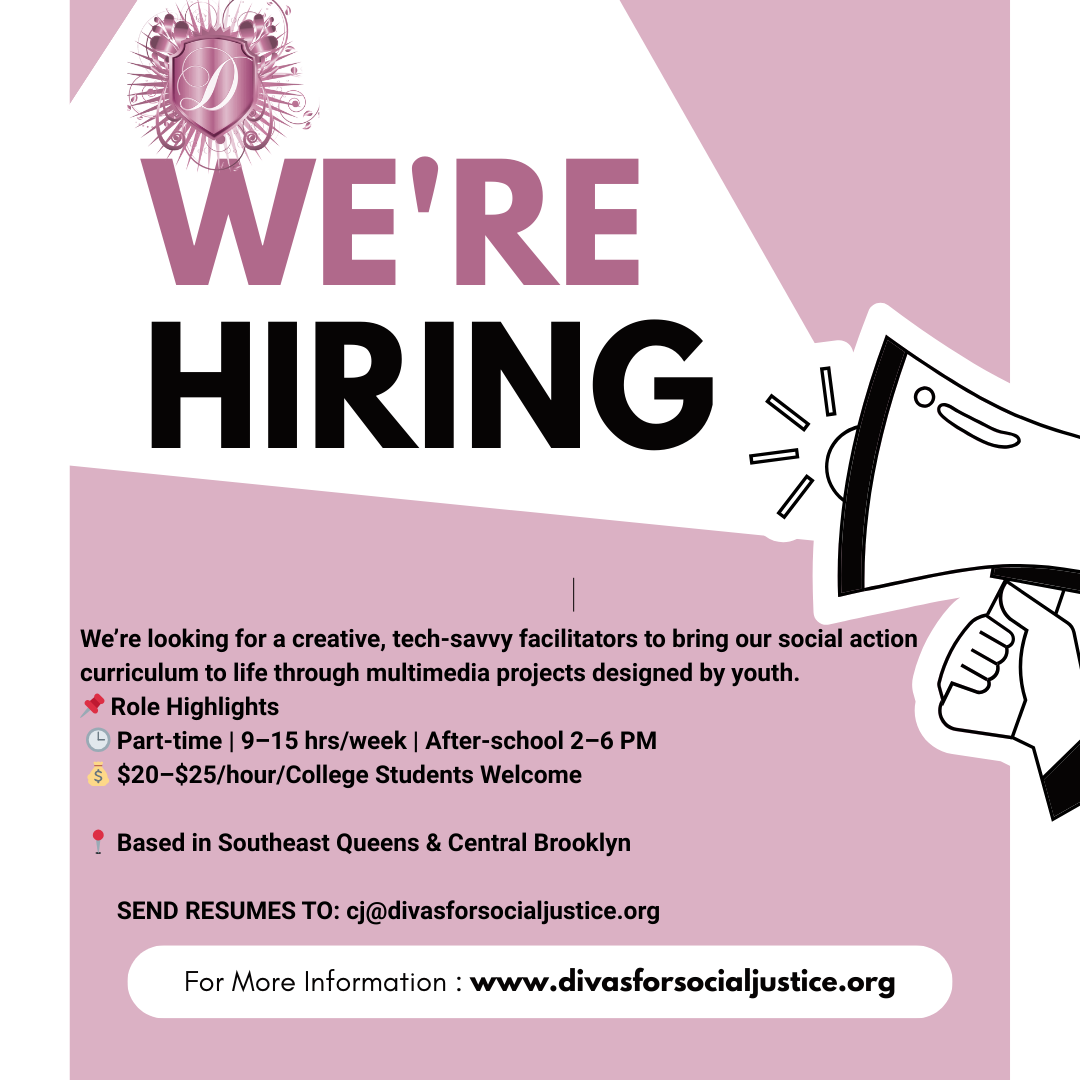 Join DIVAS for Social Justice in empowering youth to use technology for social change!We’re looking for an After School Program Facilitator who is creative, tech-savvy, and fun to bring our STEAM focused social action curriculum to life. Training and structured support will be provided.